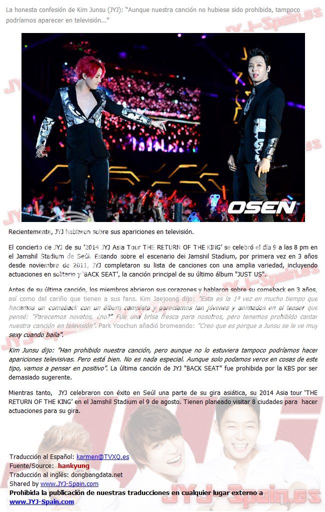 [12/08/14] La honesta confesión de Kim Junsu (JYJ): “Aunque nuestra canción no hubiese sido prohibida, tampoco podríamos aparecer en televisión…”